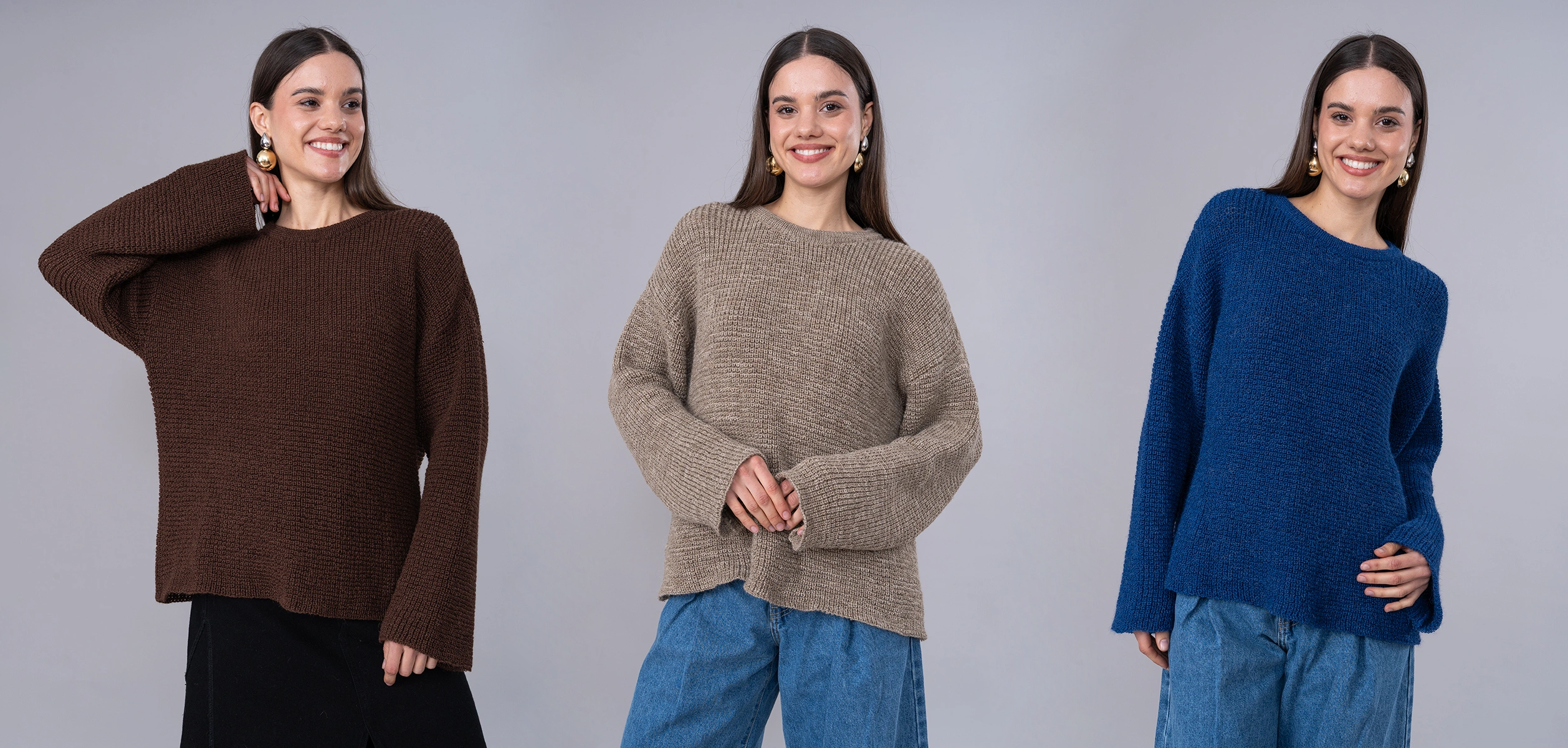 Hilo fino 2/16 que abriga sin añadir peso. Ideal para clima frío o entretiempo. / 2/16 fine yarn provides warmth without the weight — perfect for cold or in-between seasons.
